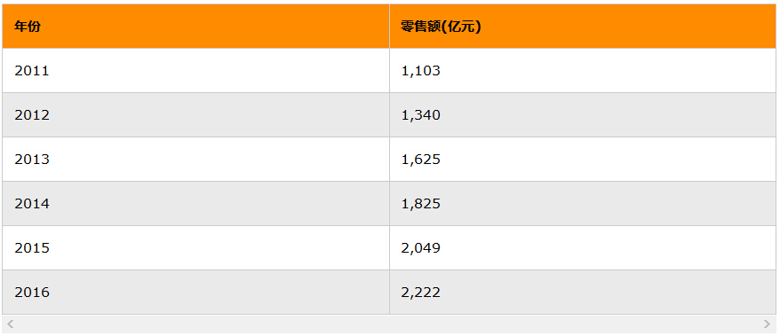 1. 近年來在中國經(jīng)濟(jì)快速發(fā)展的情況下,化妝品行業(yè)也一直保持著快速增長。據(jù)Euromonitor資料顯示,護(hù)膚品在2016年零售額達(dá)1,691億元(人民幣,下同),彩妝為283億元,同時(shí)護(hù)膚品的同比增長率為5%,彩妝為12%。據(jù)國家統(tǒng)計(jì)局資料顯示,近年來限額以上批發(fā)和零售業(yè)化妝品零售額如下: